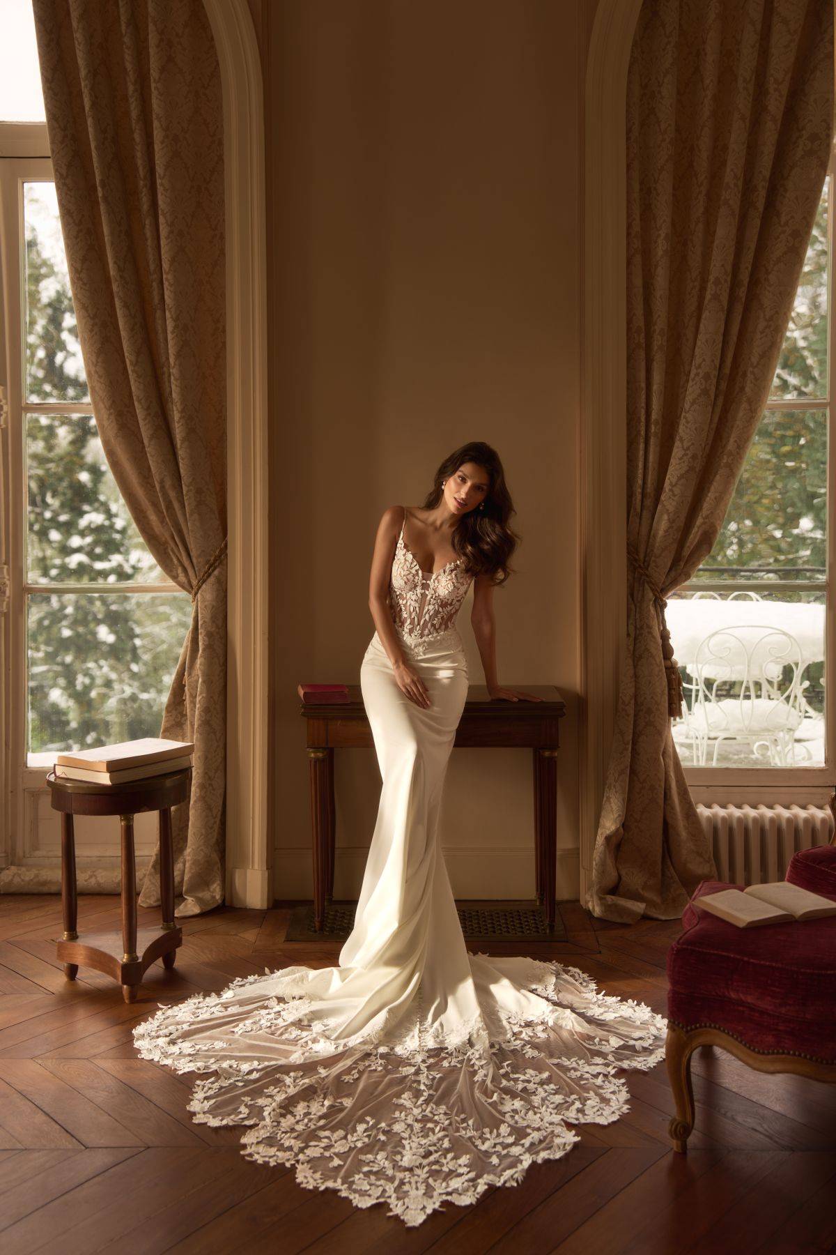 Proposée dans un coloris ivoire intemporel, cette robe sirène offre une ligne pure et une allure sculpturale. C’est le choix parfait pour une mariée qui recherche à la fois le confort du crêpe et le prestige d'une coupe haute couture.